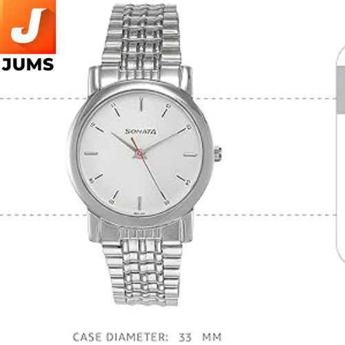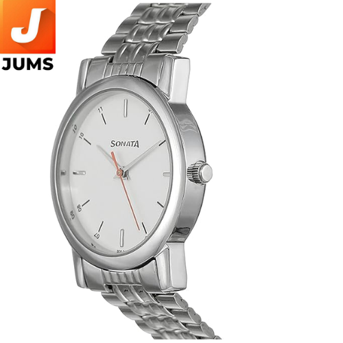 This Sonata watch is a classic men’s analog timepiece with a clean white dial and quartz movement, offering reliable and accurate timekeeping with minimal maintenance — ideal for everyday or casual wear. It typically features mineral glass over the dial for basic scratch resistance, a metal or leather strap depending on the model, and a straightforward design that’s easy to read. These watches often come with a 12-month warranty on the movement and are known for their affordable price point and simple, elegant styling that suits both casual outfits and everyday use.