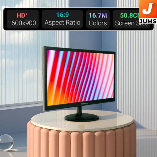 Screen Size: ~50.8 cm (~20″ class) HD+ display. Resolution: 1600 × 900 (HD+), widescreen 16:9 aspect ratio. Brightness: ~220 – 300 cd/m² (varies by listing). Colour Support: ~16.7 million colours. Dynamic Contrast Ratio: ~20,000:1. Viewing Angles: Wide viewing angles (approx. H160°/V130° or H170°/V160°). Response Time: ~5 ms for everyday use