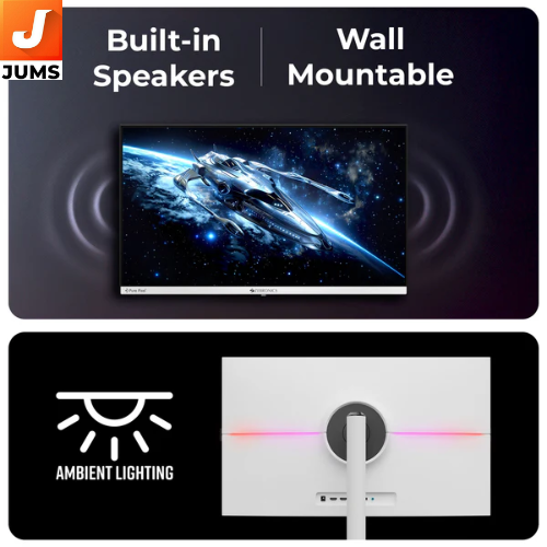 27″ (68.5 cm) QHD (2560×1440) resolution for sharp gaming and productivity visuals. IPS panel with anti‑glare coating and wide 178° viewing angles. 300 nits brightness with HDR10 support for improved contrast and colour. Wide colour coverage: ~99 % sRGB and ~93 % DCI‑P3 (vibrant colour accuracy). Dynamic contrast ratio ~1,000,000:1 for deeper blacks