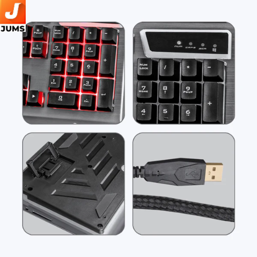 Multicolor LED lighting with 4 modes (3 light modes + off) to customize the look. Integrated media control keys for quick access to audio and media functions. Windows key enable/disable to prevent accidental interruptions during gaming. All keys enable/disable for uninterrupted gameplay. 2-step adjustable stand design for better typing angle and comfort. Laser keycaps with an aluminum body for durability. Backlight LED on/off function to save power or adjust lighting. Braided cable with a high-quality USB connector for stable connection and longer life