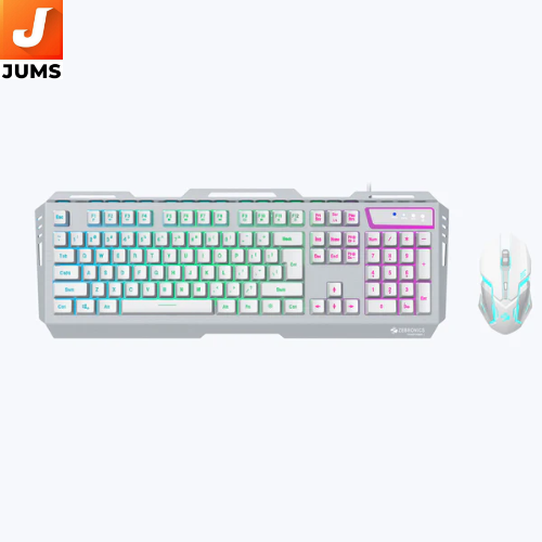 The Zebronics Zeb-Transformer 1 is a wired gaming keyboard and mouse combo designed to upgrade your PC setup with stylish lighting and practical features. The full-size 104-key keyboard includes integrated multimedia keys, multi-color LED backlighting with several modes, Windows/all-keys disable options for uninterrupted gaming, sturdy braided cables, and a gold-plated USB connector for reliable connectivity. The accompanying mouse has an ergonomic design with breathing LED lighting, six buttons including DPI control and forward/backward functions, and a high-resolution optical sensor supporting up to 3200 DPI — all aimed at providing a responsive, visually engaging experience for everyday use and casual gaming.